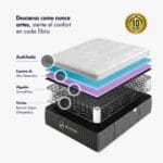 La fibra que rodea los resortes está hecha de algodón TermoPolar, diseñado específicamente para aislar la unidad resortada de los demás componentes del colchón. Esta capa actúa como una barrera térmica, mejorando la durabilidad y el confort del colchón, mientras garantiza un descanso fresco y equilibrado.